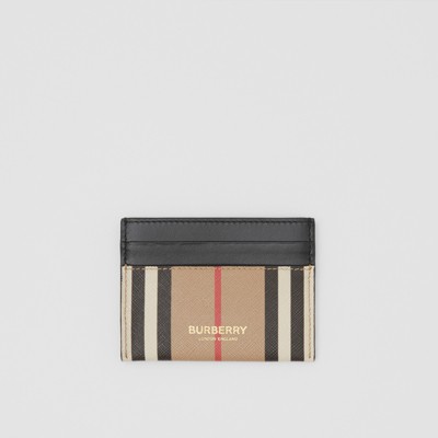 Icon Stripe And Leather Card Case In Archive Beige Burberry Official